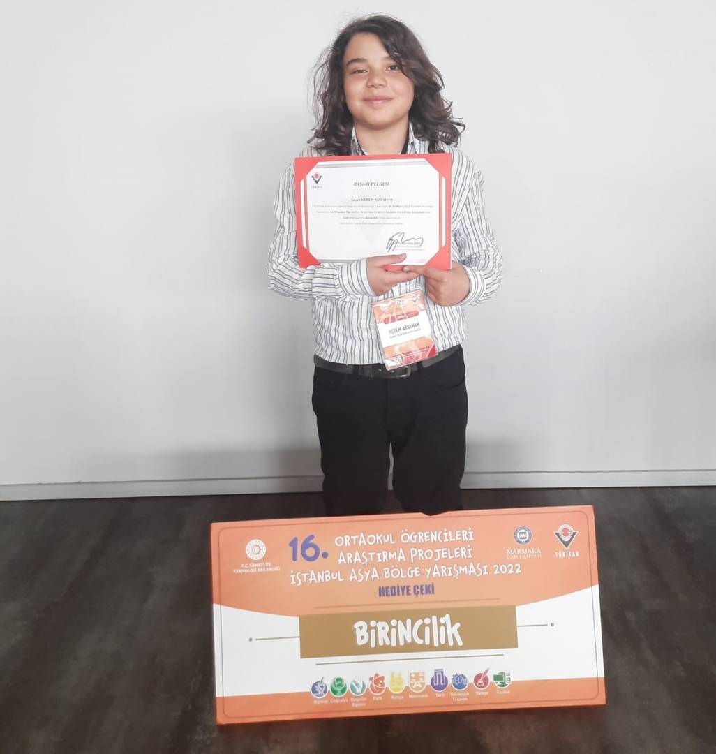 Kerem Ardahan TÜBİTAK Ortaokullar arası Araştırma Projeleri İstanbul Asya Bölge Yarışmasında Birinci Oldu