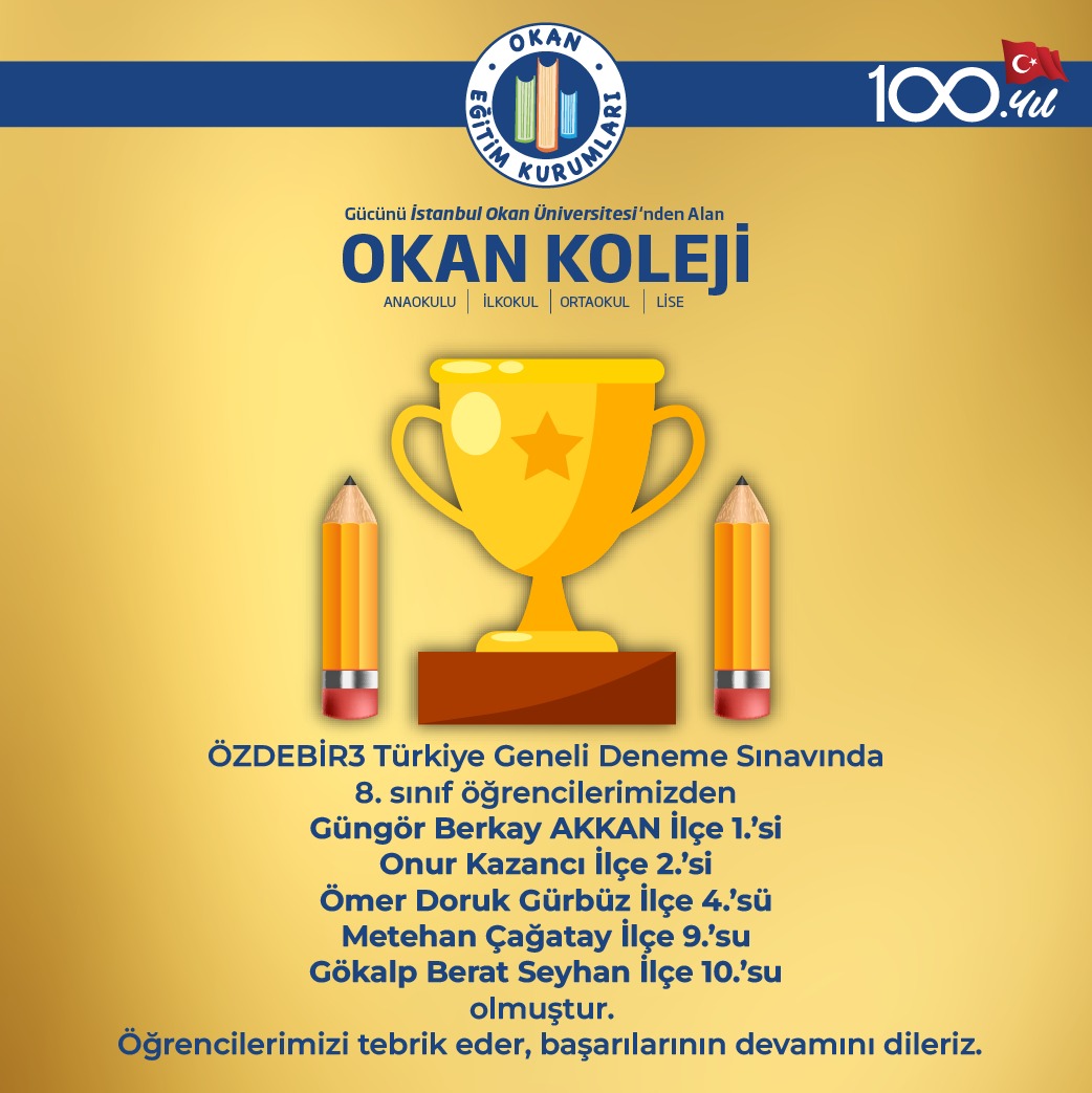 Öğrencilerimiz ÖZDEBİR3 Türkiye Geneli Deneme Sınavında İlçe Genelinde Dereceye Girdiler