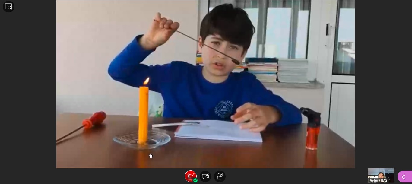 Anaokulu, İlkokul öğrencilerimiz laboratuvar ortamına dönüştürdükleri evlerinde, Fen Bilimleri ve Matematik alanlarında merak ettikleri ve derslerinde işledikleri konuları deneyerek gözlemleme olanağı buldular. Suyun kaldırma kuvveti, gökkuşağının oluşumu, karbondioksit gazı ile balon şişirme, patlayan yanardağ, havasız kalan mum, yapışan bardaklar, dans eden mısırlar, saf madde ve karışımlar, akciğerlerimizin işlevi, basit elektrik devresi, mıknatısların manyetik özelliği, sütten yapıştırıcı elde etme, geometrik şehirler, görünmeyen mürekkep, mikrobun oluşumu ve yayılması, patlamayan balon, nişasta ile suyun etkileşimi” alanlarında yaptıkları deneylerin sunumları ile yaşayarak öğrendiler. Toplamda 75 projeyi OKAN Dijital Öğrenme Platformu’ndan başarıyla sundular. Öğrencilerimizin oluşturdukları projeler, gelecekte onların birer bilim insanı olarak hazırlayacağı bilimsel makalelerin adımları olacaktır.