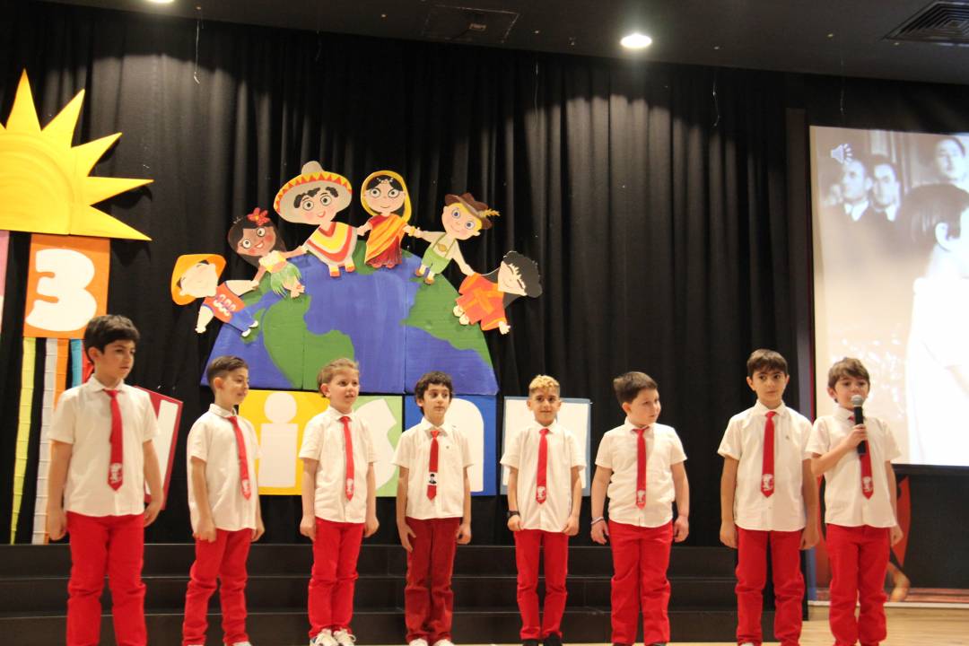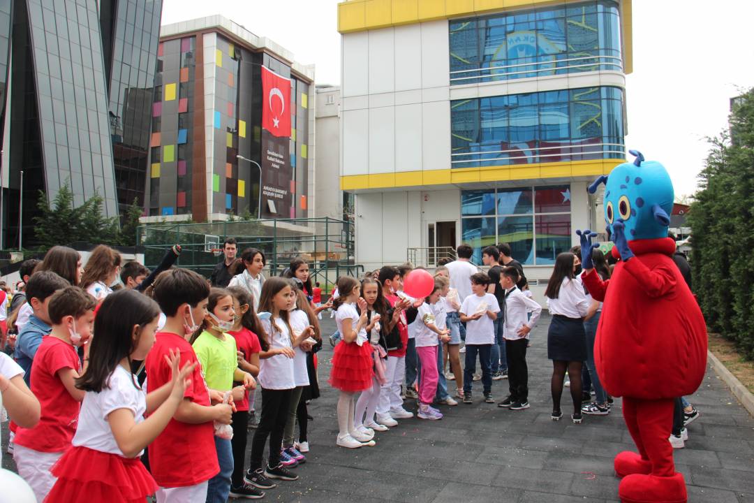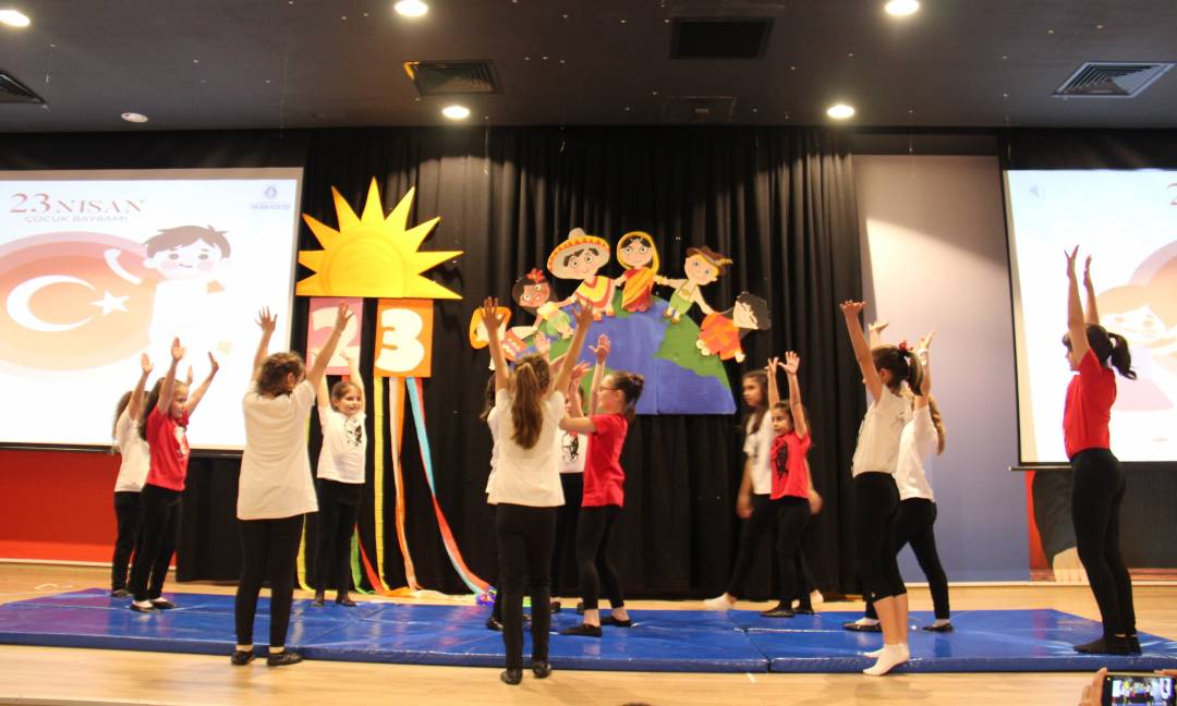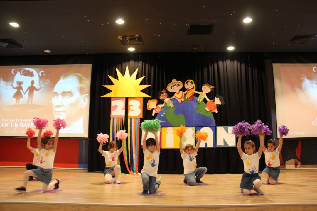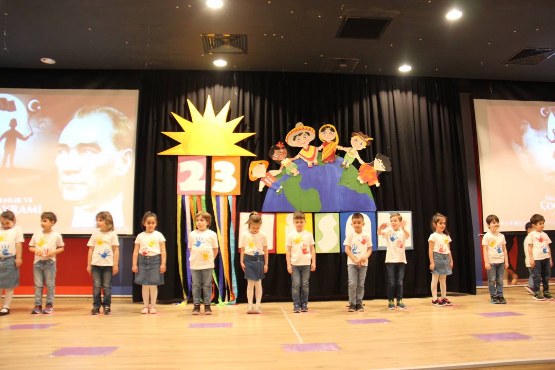 ve önemine ilişkin yapılan konuşmaların ardından öğrencilerimiz 23 Nisan şarkıları söylediler, şiirler okudular, dans gösterilerinin yanı sıra Fransızca, İspanyolca ve Çinçe dillerinde drama gösterileri sergilediler. Yumurta taşıma, çuval yarışı,