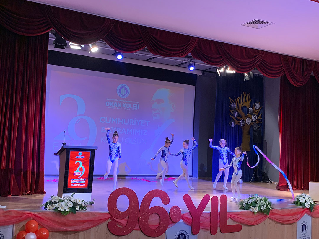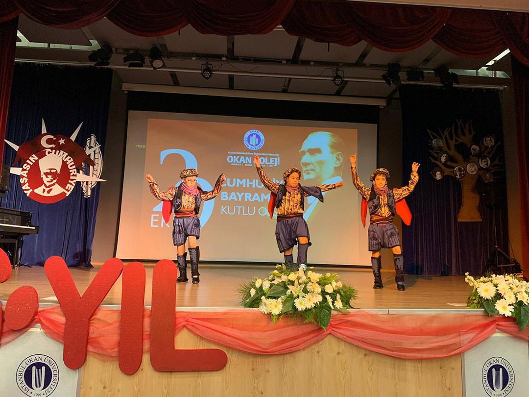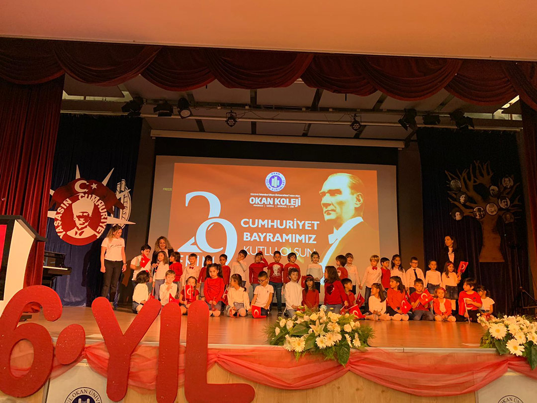 Okan Koleji Tuzla ve Ataşehir Kampüsü olarak Cumhuriyet Bayramımızın 96. Yıl Kutlama Törenini 29 Ekim Cuma günü büyük bir coşkuyla kutladık. Tuzla Kampüsümüzün kutlama töreni İstanbul Okan Üniversitesi Bekir Okan Konferans salonunda yönetici, öğretmen, öğrenci ve velilerimizin katılımı ile gerçekleşti. Saygı duruşu ve İstiklal Marşı’nın ardından okul koromuzun seslendirdiği Marşlarla müzik ziyafeti yaşanırken, günün anlam ve önemini belirten konuşmayı Ortaokul –Lise Müdürümüz Sn. Gürkan Pişkin Ataşehir Kampüsümüzde ise Anaokulu-İlkokul Müdürümüz Sn. Özlem Taşkend Coşkunaydın ve Ortaokul-Lise Müdürümüz Sn. Nüket Demirkaya ve Genel Müdür Yardımcımız Sn. Fahri Cürebal konuşmasını gerçekleştirdi. İlkokul 4.sınıf öğrencilerimiz Cumhuriyet şiirlerini seslendirdi, modern dans ve halk oyunları vals gösterileriyle devam eden kutlama törenimiz “İzmir ” Marşı ile sona erdi. Atamızı Saygı ve Özlemle Anıyor, Cumhuriyetimizin 96. Yılını Kutluyoruz.
