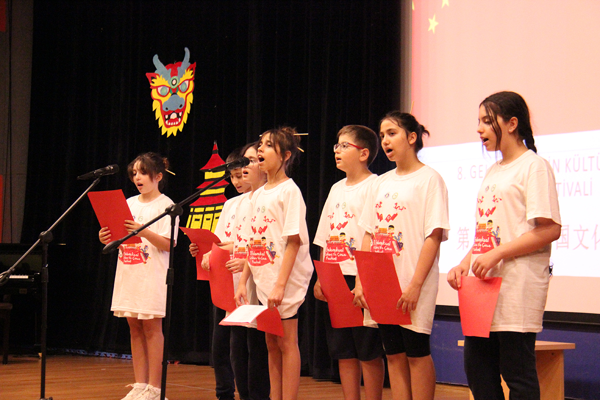 attılar. Çin kültürüne özgü kostümler giyen öğrencilerimiz Çince şarkılar