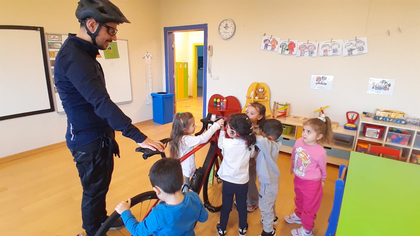 etkinliklerinde anaokulu öğrencilerimiz profesyonel bisikletin ekipmanlarını ve