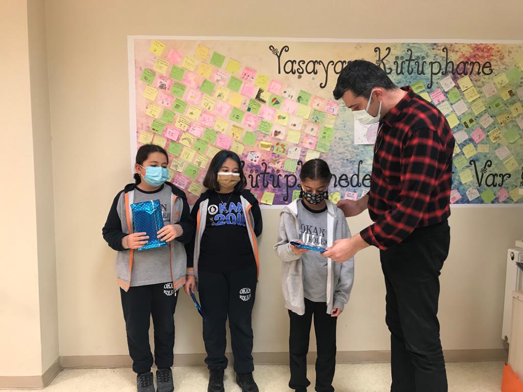 “Kitap Kurdu” ödüllerini her ay İlkokul ve Ortaokulu’ndaki öğrencilerimizden, kütüphanemizin kullanımına özen gösteren, en çok ödünç kitap alan, okuyan ve paylaşanlar arasından seçilmektedir. Lise öğrencilerimize ise dönem sonlarında kütüphane kullanımları ve kitap okuma kültürlerini desteklemek amacıyla “Kitap ve Kütüphane Dostu Ödülleri” verilmektedir. Ödül kazanan öğrencilerimizi tebrik ediyoruz.