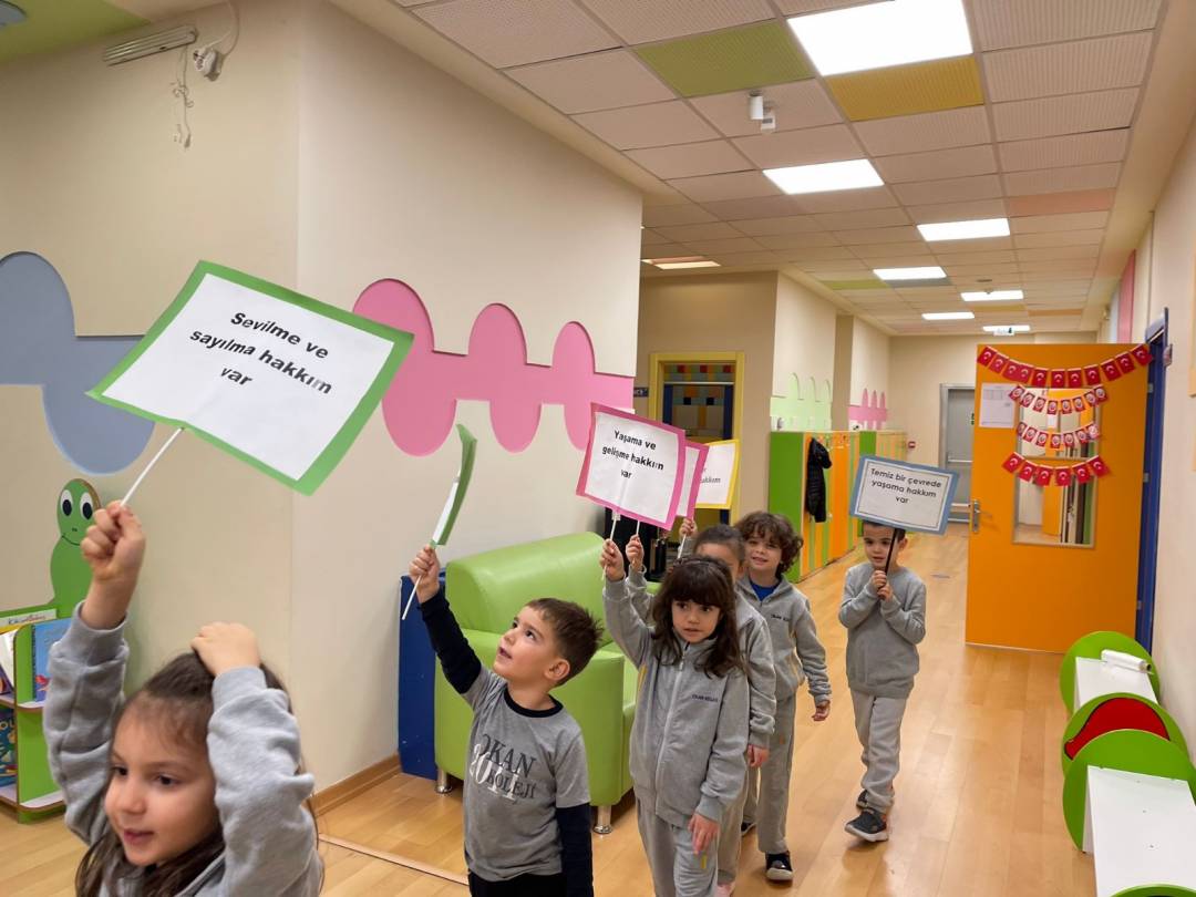 özel günde pankartlarla yürüyüş yaptılar. İstanbul Okan Üniversitesi Çocuk
