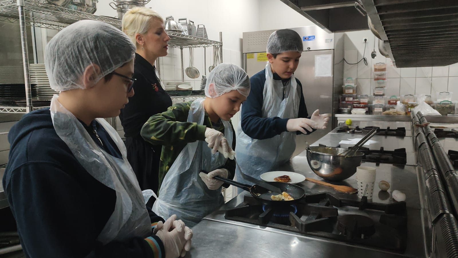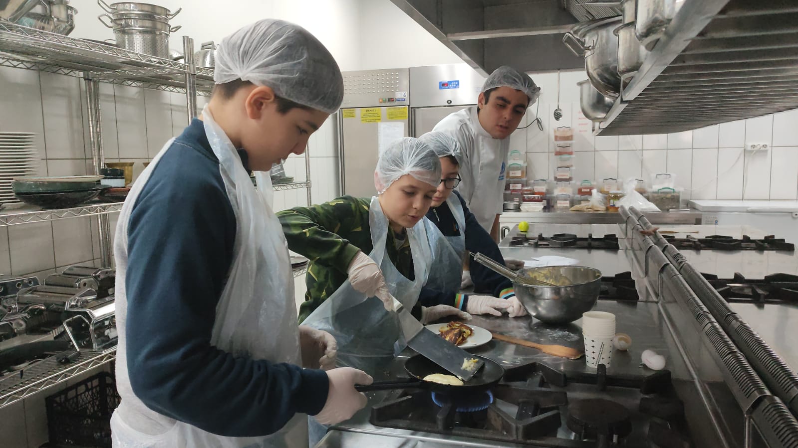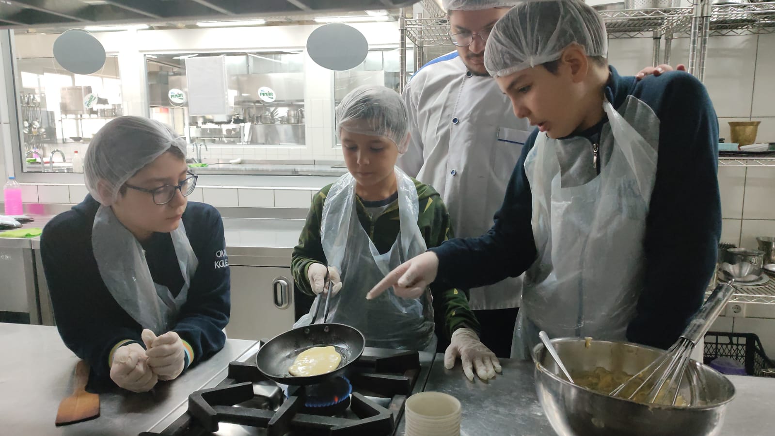 etkinlikte İngilizce pratik yaparak pankek yapmayı öğrendiler.