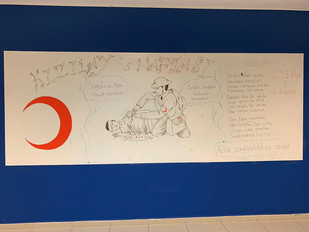 29 Ekim – 4 Kasım tarihleri arasında Kızılay Haftası etkinlikleri kapsamında Tuzla Okan Koleji’nde öğrenci ve öğretmenler eşliğinde kutlandı. Kutlama etkinliklerinde kan vermenin önemi üzerinde durularak sınıflarda konu ile ilgili videolar izletildi. Öğrenciler tarafından Wall paint etkinliği yapılarak haftanın önemi pekiştirildi.