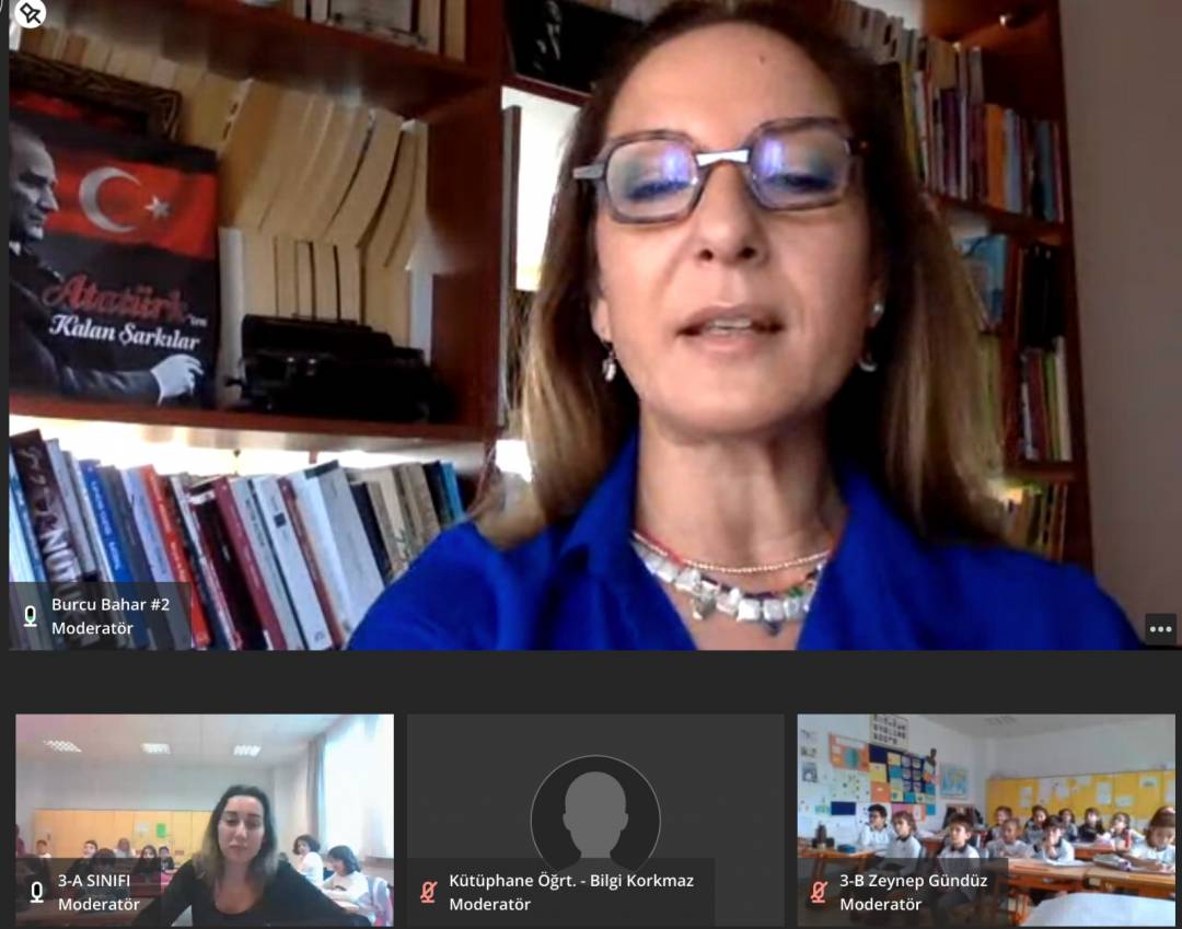 Yazar Burcu Bahar ile gerçekleştirdiğimiz söyleşide 3.sınıf öğrencilerimiz “Atatürk ve Sihirli Gözlük” isimli eser üzerine sohbet ederek Atatürk’ün kitap sevgisi, yaratıcı düşünmenin yaşantımıza faydası, alışkanlıklarımız ve günlük tutmanın önemi konuları ile ilgili yeni bilgiler edindiler.