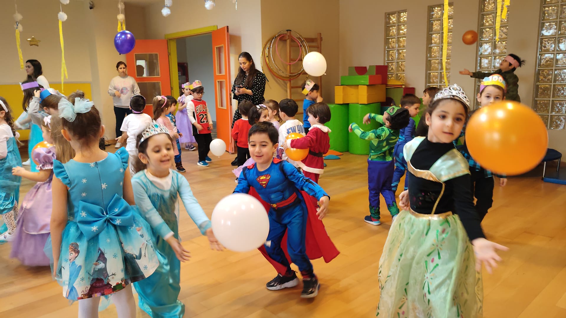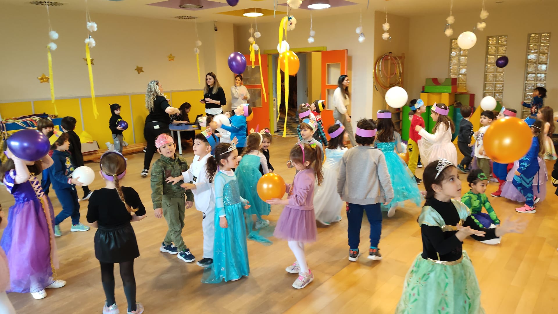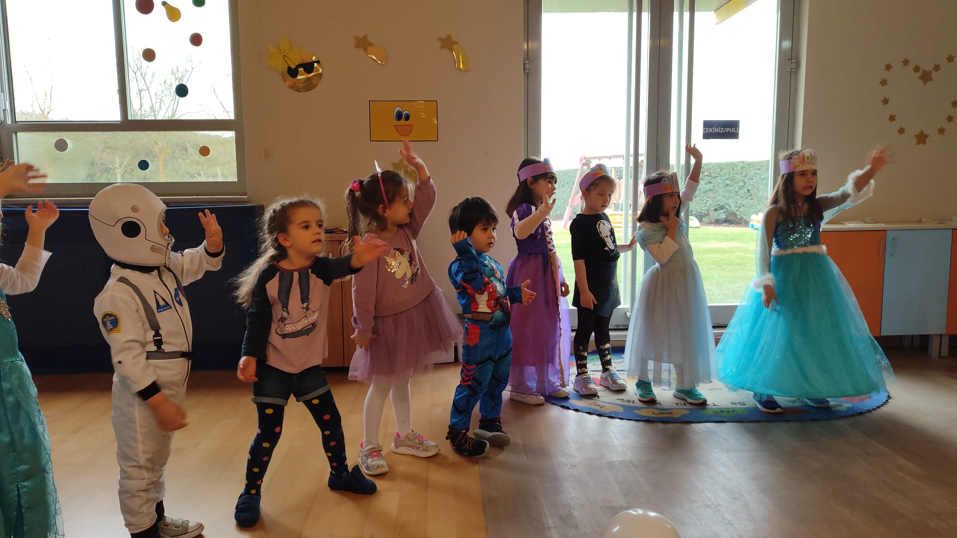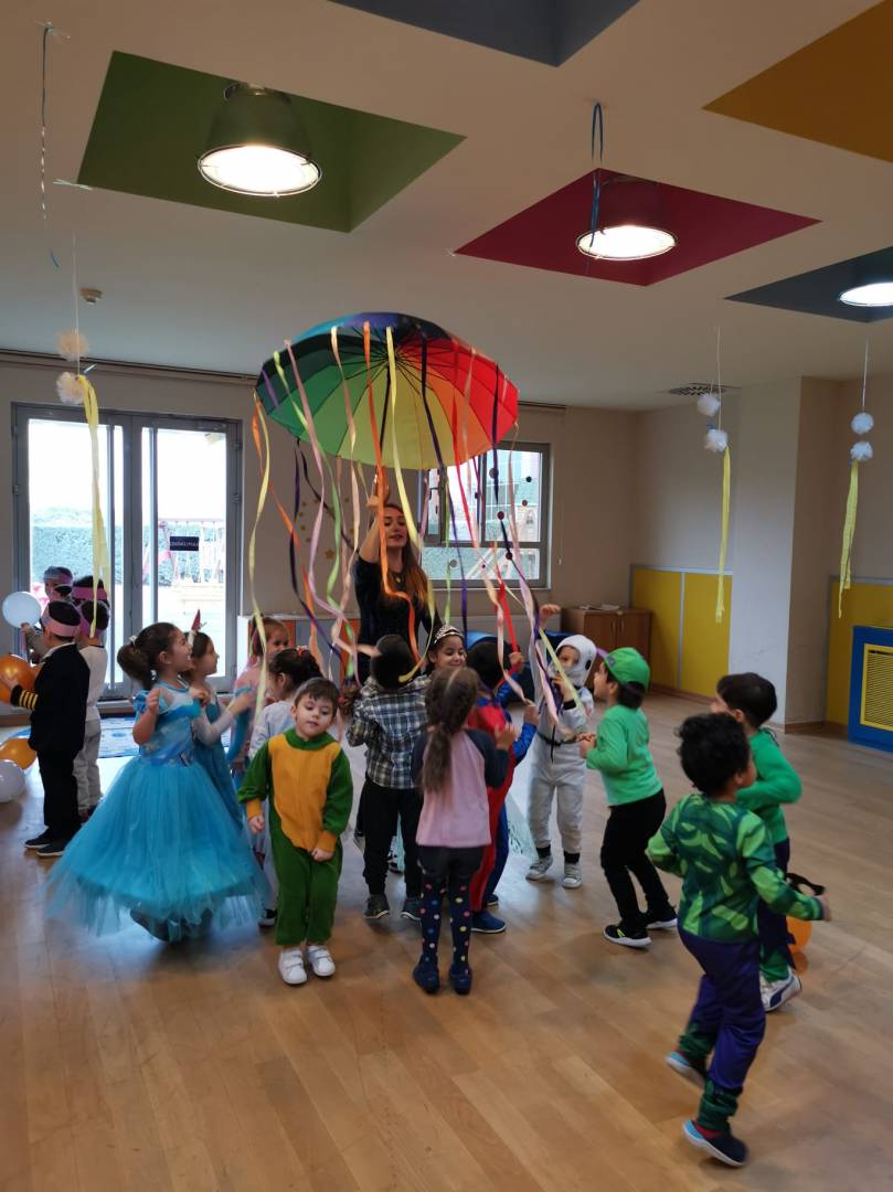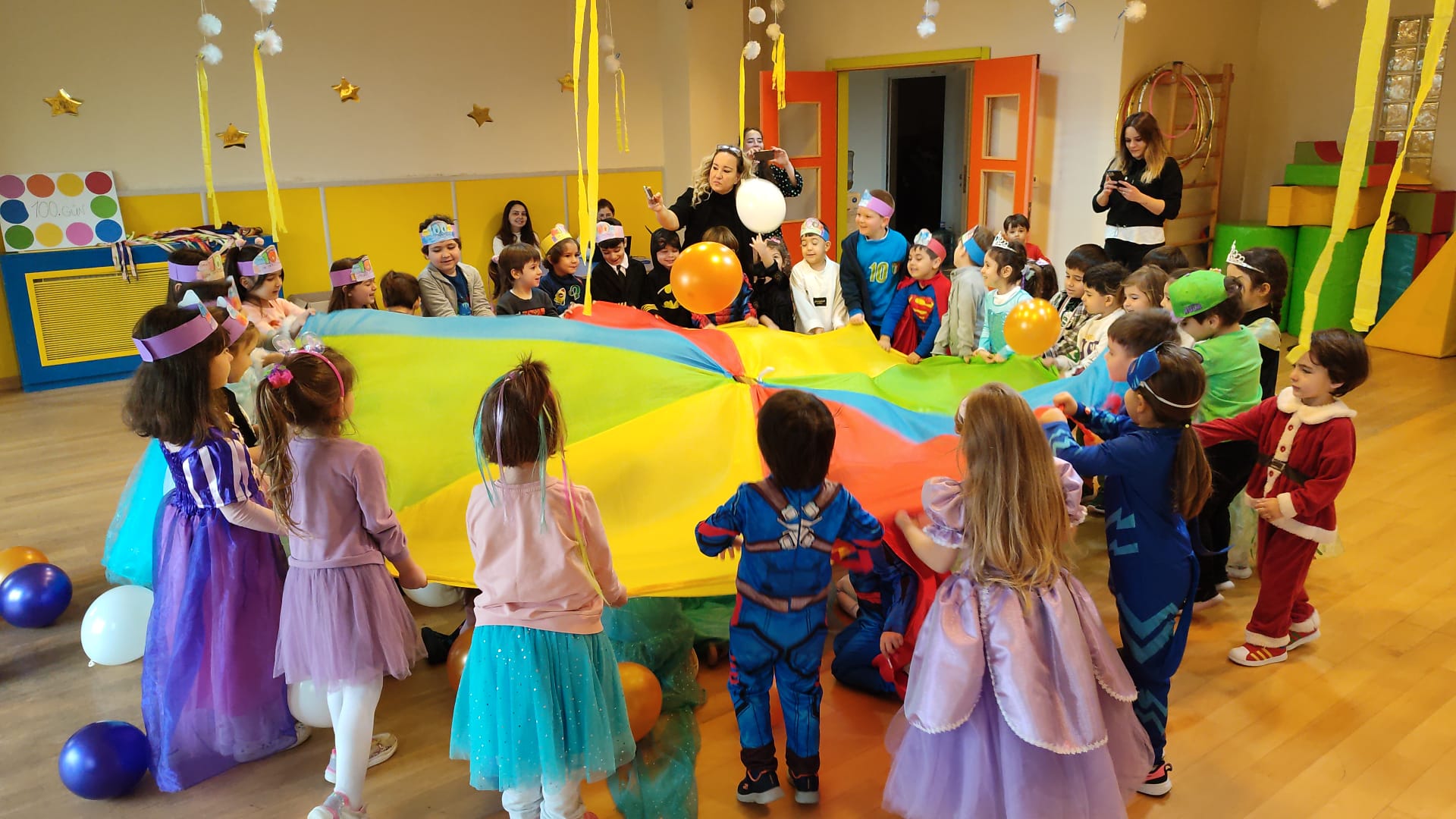Öğrencilerimiz okulumuzun 100. gününde müzik eşliğinde dans ederek yarışmalara katıldılar. 100’e kadar ritmik sayı çalışması, sınırlı boyama tekniği ile 100. gün tacı etkinliği yaptılar. Renkli balonlar eşliğinde paraşüt oyunu, İngilizce öğretmenlerimiz eşliğinde müzikli oyunlar ve heykel oyunu oynadılar.