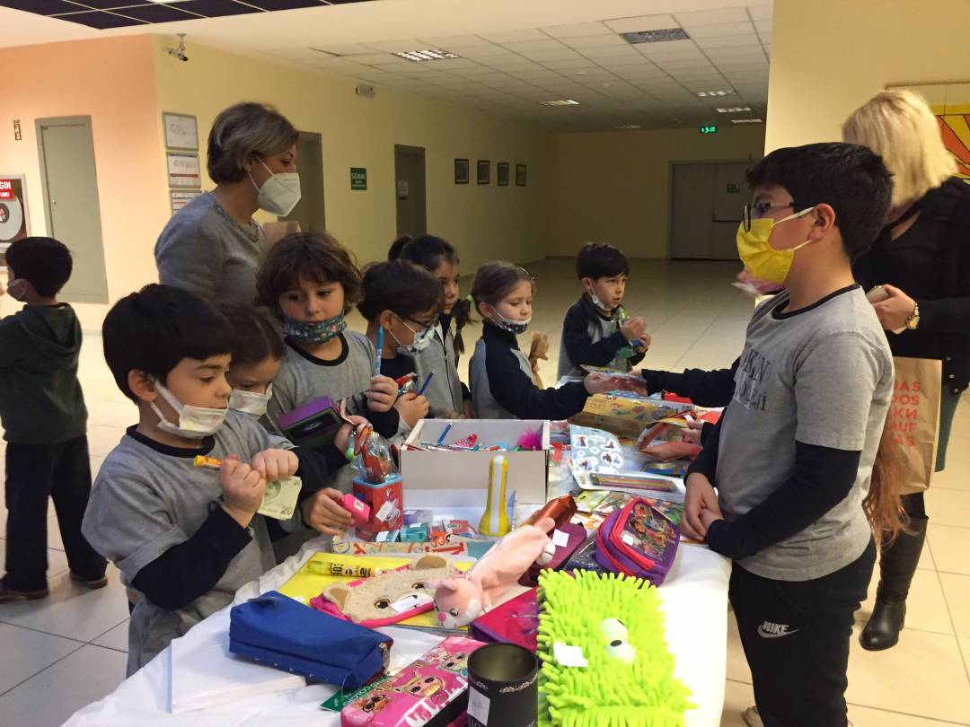 öğrencilerimiz İngilizce konuşarak pratik yaptılar. Kendilerine ait olan stantlarda ürünlerin
