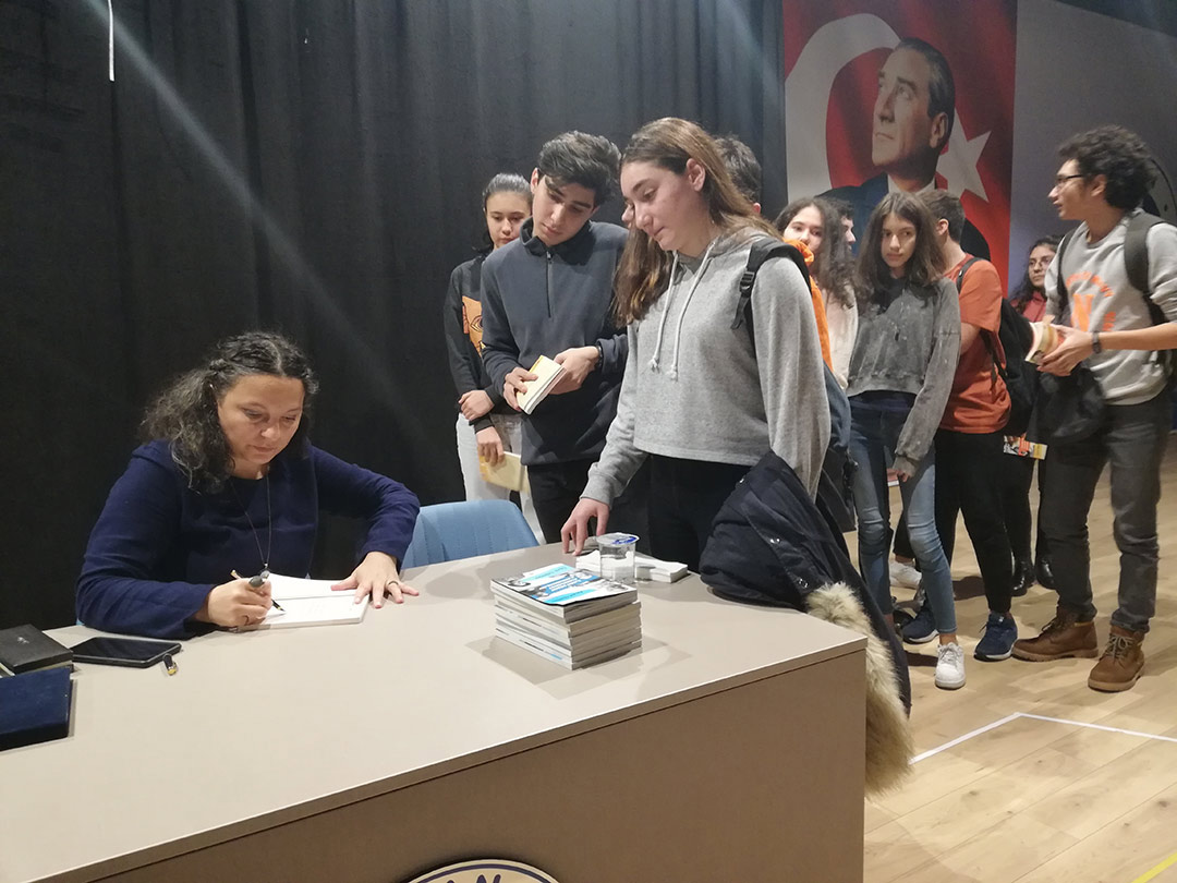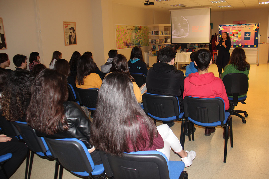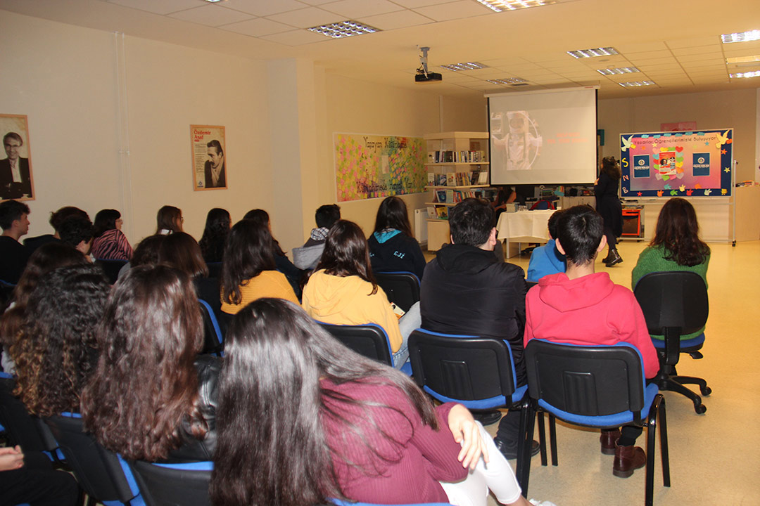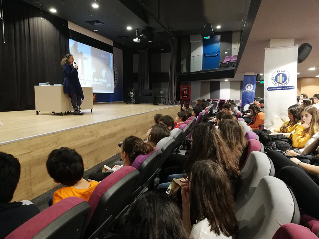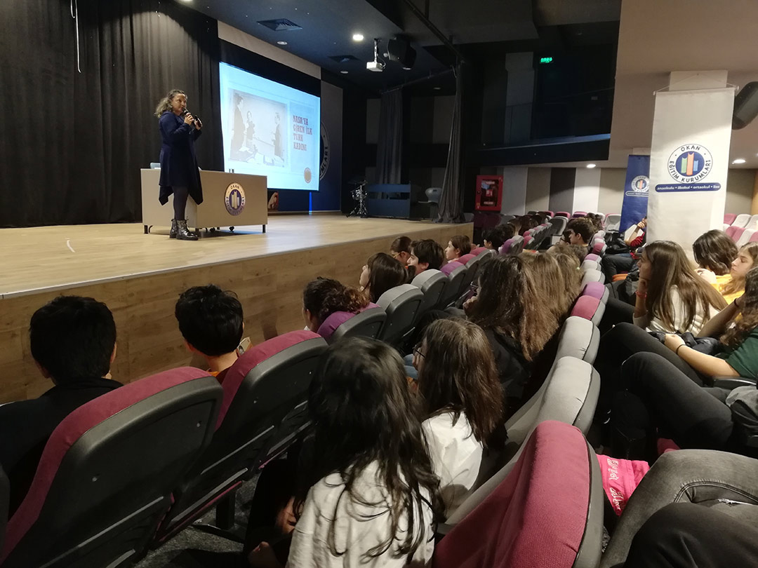 5 Aralık 2019 Perşembe günü öğrencilerimizin okuma listesinde yer alan “İlham Veren Cumhuriyet Kahramanları: Öncü Kadınlar/ Öncü Erkekler “ isimli eserleri üzerine Yazar Özlem ÖZDEMİR ile söyleşi etkinliği gerçekleştirdik. Yazar Özlem Özdemir'den cumhuriyet tarihinde bilim, sanat, spor alanlarında ilkleri başarmış, öncü kişiliklerin bilinmeyen hikayelerini dinledik, yepyeni bilgiler edindik. Yazara hazırladığımız öncü kadın karakterlerin kostüm giyerek, hikayelerini arkadaşlarımızla paylaştık.